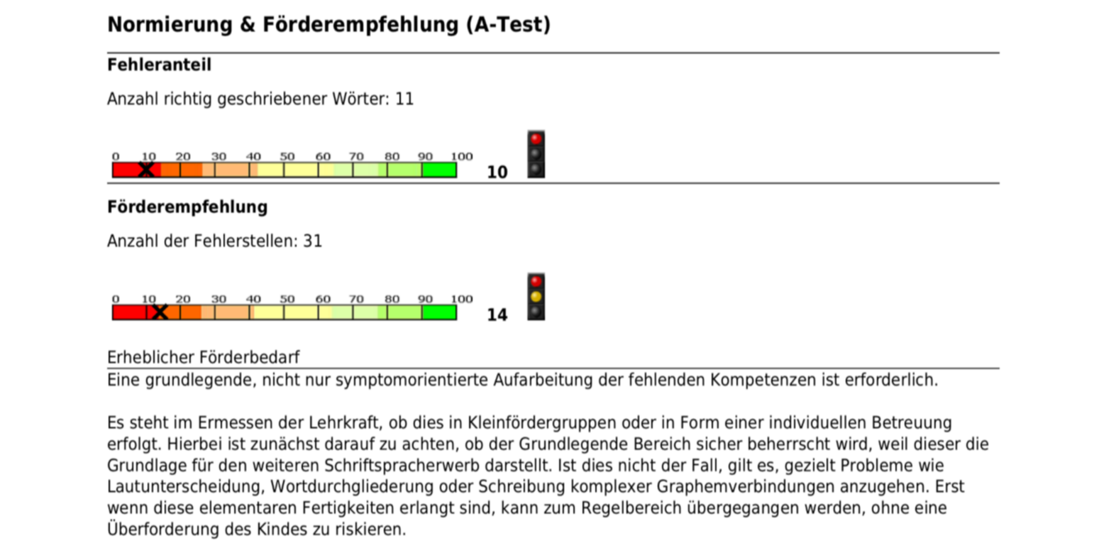 Münsteraner Rechtschreibanalyse (MRA) Das sich daraus ergebende Leistungsprofil gibt präzise Auskunft darüber, was der Schüler bereits beherrscht und welche Bereiche ihm noch Schwierigkeiten bereiten. Anhand der dort hinterlegten Daten können Sie die Fähigkeiten des Schülers qualitativ einschätzen. Eine wichtige Rolle spielt dabei die Differenzierung nach Problemen im „Grundlegenden Bereich“ und im Regelbereich.